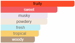 Се карактеризира со букет од слатко овошје и сензуалната база на мошус.
